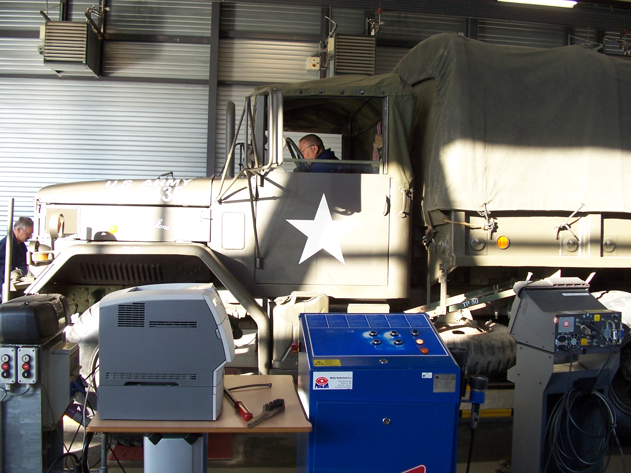 De vriendelijke keurmeester bekeek alles rustig. De trekhaak was nog even een zoekplaatje in de computer van de RDW. Officieel blijkt het een haakkoppeling te zijn. Verder nog de breedte en lengte van de wagen en voor de koppeling de afstand van voor tot aan de koppeling. Voor het laadvermogen en de fabrikant werd het typeplaatje in de cabine geraadpleegd.